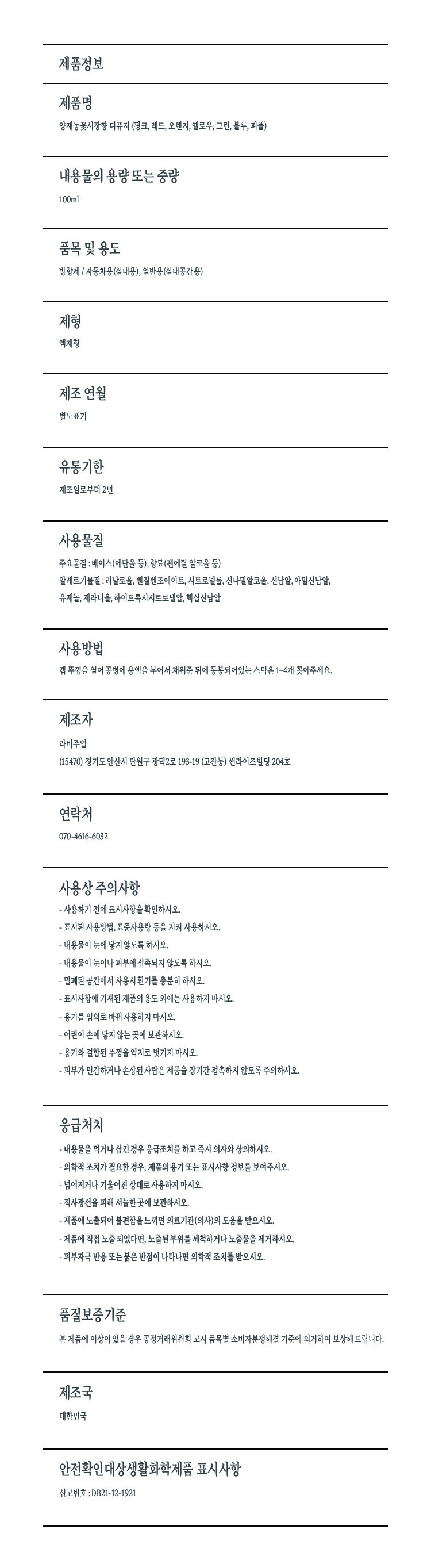 LAVISUAL 양재동꽃시장향 플라워디퓨저 100ml